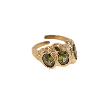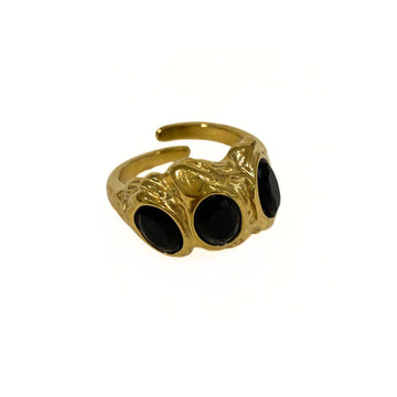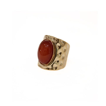 Anillo ajustable de acero dorado con un ancho de 3cm. y con un imponente cabujón...