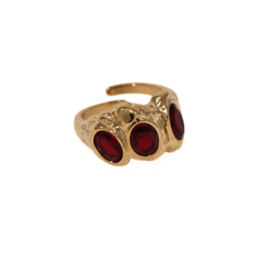 Anillo acero dorado en forma de sol con bordes irregulares y centro hueco. Ajustable.