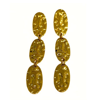 Pendientes dorados en acero inoxidable, su cadena con siete chapitas crea una silueta elegante y...