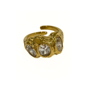 Anillo ajustable de acero dorado con un ancho de 3cm. y con un imponente cabujón...
