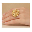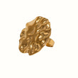 Anillo acero dorado con un ancho de 3,5cm. y una base de chapa martillada. Ajustable.