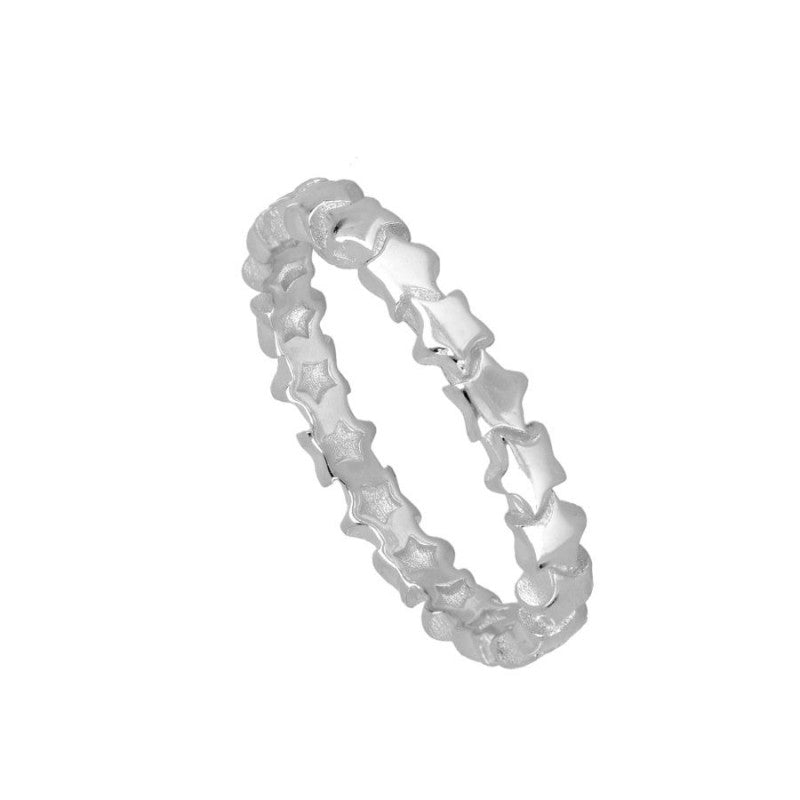 Anillo rodeado de estrellitas con un ancho de 3,5mm. Disponible en Plata de Ley 925 y en Baño de Oro 18kts.