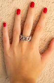 Anillo acero plateado liso de un grosor de 10mm. y con forma de eslabones.