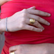 Anillo acero dorado de 2cm. de ancho. Su diseño abombado recuerda una concha. Ajustable.