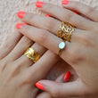 Anillo acero dorado de líneas entrelazadas en forma de rama. Anillo ajustable.