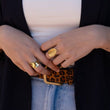 Anillo acero dorado con forma ovalada de 26mm. por 17mm. Ajustable.