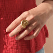 Anillo acero dorado de 2,5cm. en forma de caracola. Ajustable.