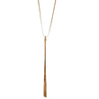 Collar acero dorado de 62cm. graduable a 67cm. Está compuesto por una cadena serpenteada de 2mm. y desde su centro caen cuatro cadenas más de 19 cm, formando un colgante lineal con caída perfecta, que estiliza el escote y añade un toque de sofisticación.