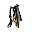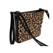 Bolso de piel animal print. Medidas exterior: 14,5cm. x 21,5cm. x 1,5cm. Tiene correa de mano, más una correa ajustable para poder cruzarlo. Cierre con cremallera y pequeño bolsillo interior. Rodea el bolso una cremallera decorativa. La parte posterior de nuestro Bass es de piel negra.