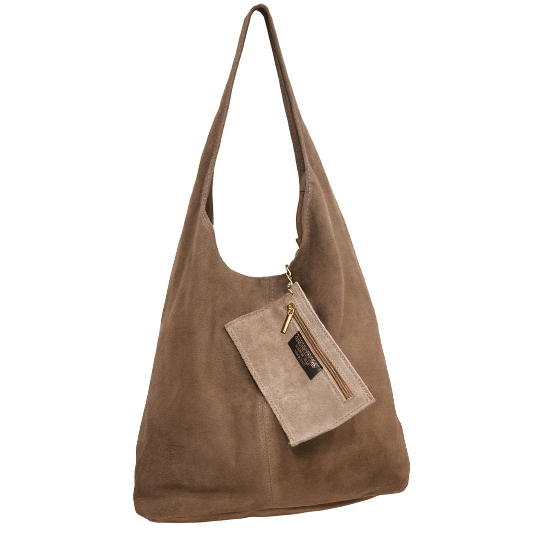 Este bolso de piel serraje combina suavidad y estructura en un diseño que abraza la sencillez con elegancia. Con sus 35x14x30cm, ofrece un volumen armonioso que acompaña cada movimiento con naturalidad. Su tacto aterciopelado y su caída ligera le dan un aire cálido y orgánico, ideal para el día a día sin renunciar al estilo.
