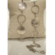 Cinturón tipo cadena elaborado en metal plateado brillante. Su diseño se compone de una cadenas más chapas martilladas alternadas con aros lisos. El largo total es de 100cm. con cierre mosquetón que se ajusta a la medida que necesites.