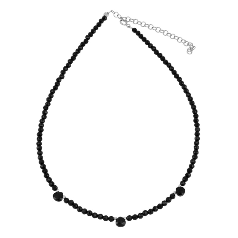 Gargantilla de 35cms. graduable hasta 42cms. envuelta con espinelas, más tres de mayor tamaño colgando en forma de gota. Disponible en Plata de Ley 925 y en Baño de Oro 18kts.