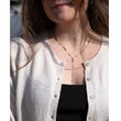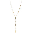 Collar acero dorado de 42cm. graduable a 46cm. La base del collar está compuesta por pequeños tubitos metálicos y bolitas que se alternan de manera armónica. Desde el centro del collar, cuelga una tira adicional de 10cm., que sigue el mismo patrón de tubitos y bolitas, creando una caída vertical elegante. Esta tira tiene un movimiento fluido, dando un aire ligero y dinámico al conjunto.