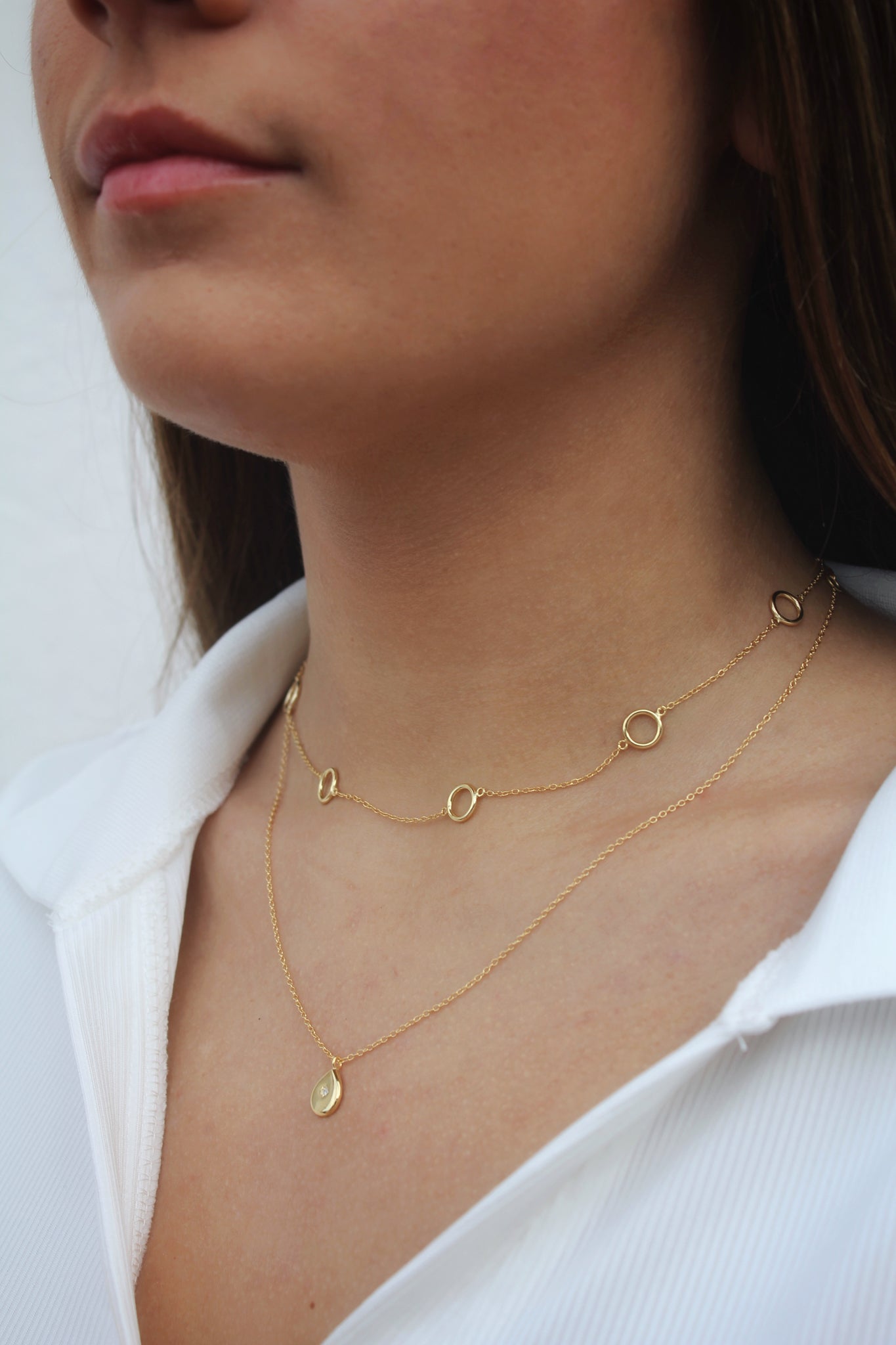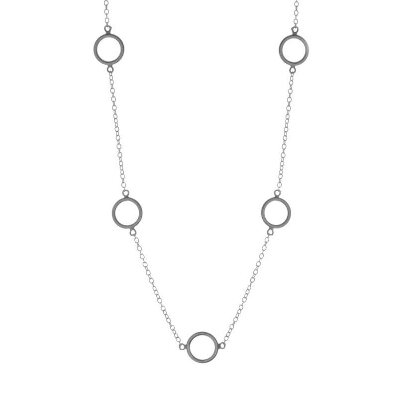 Gargantilla de 35cms. graduable a 40,5cms. y a 43cms. Cadena con cinco círculos intercalados de 8mm. Disponible en Plata de Ley 925 y en Baño de Oro 18kts.