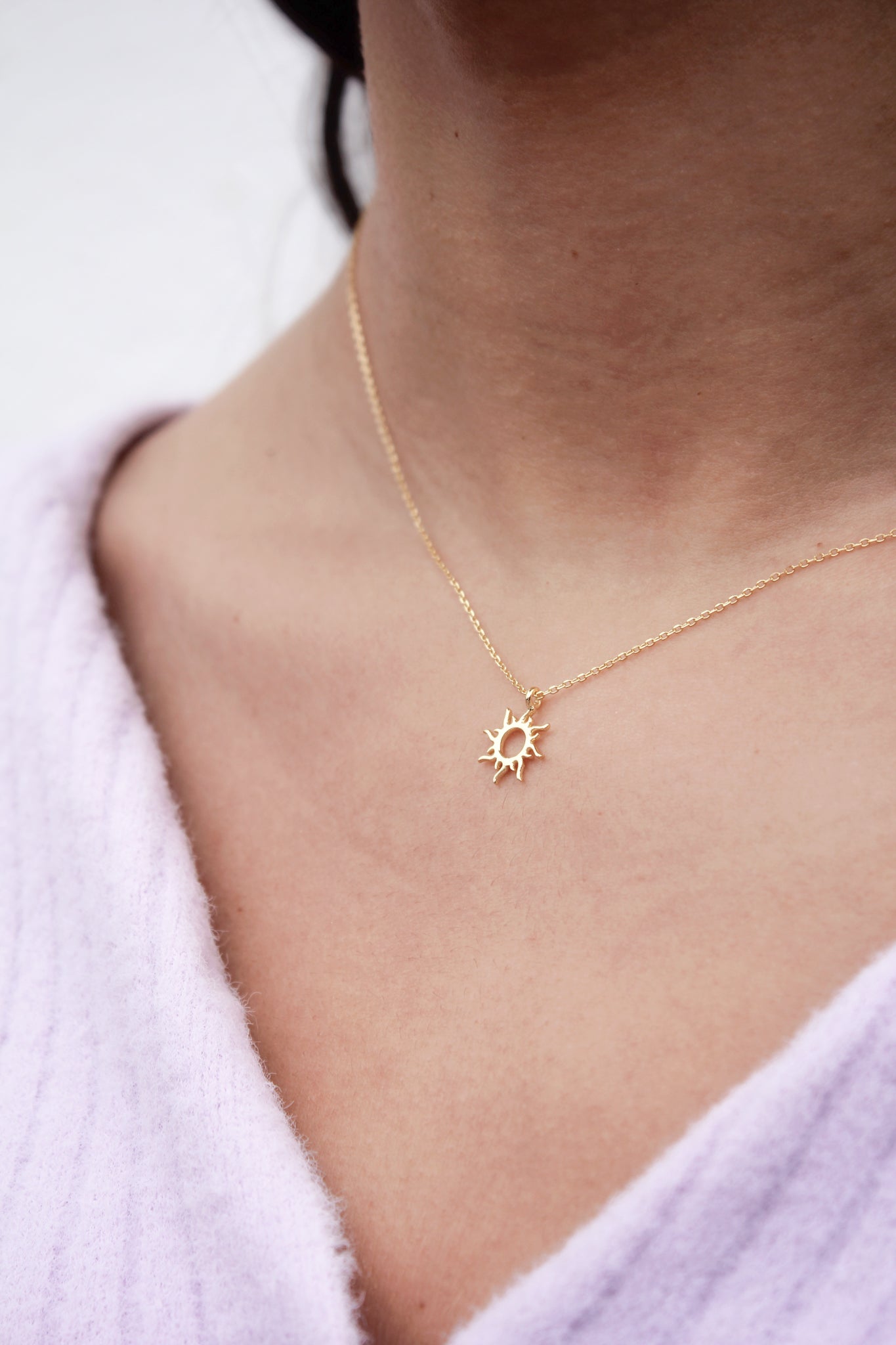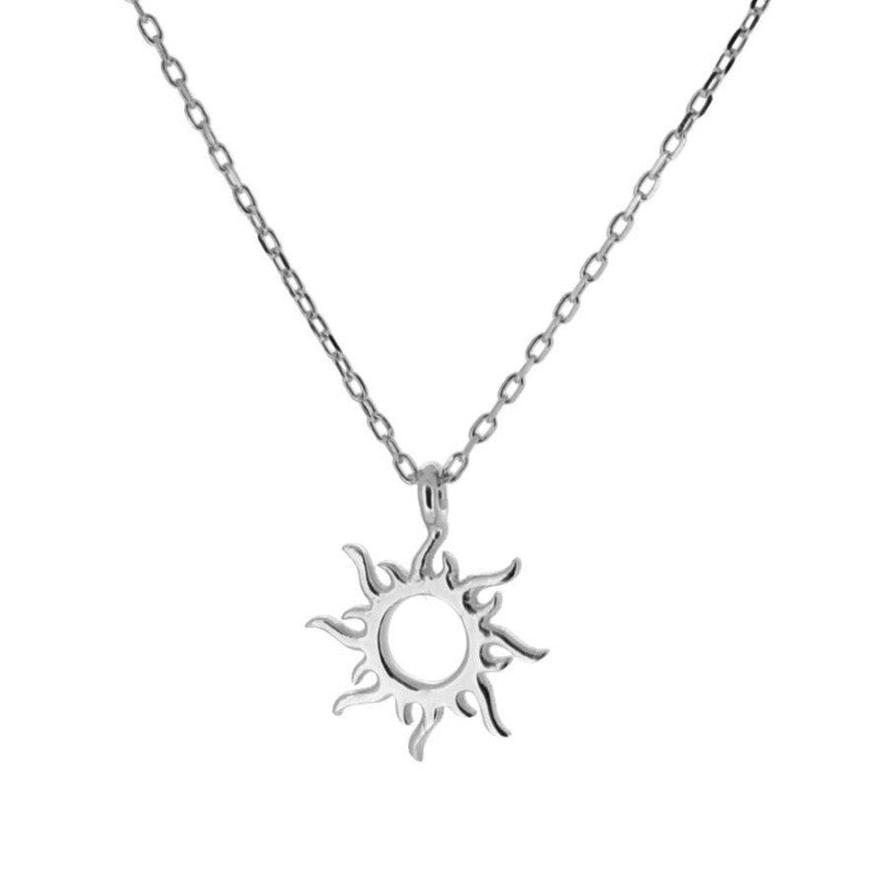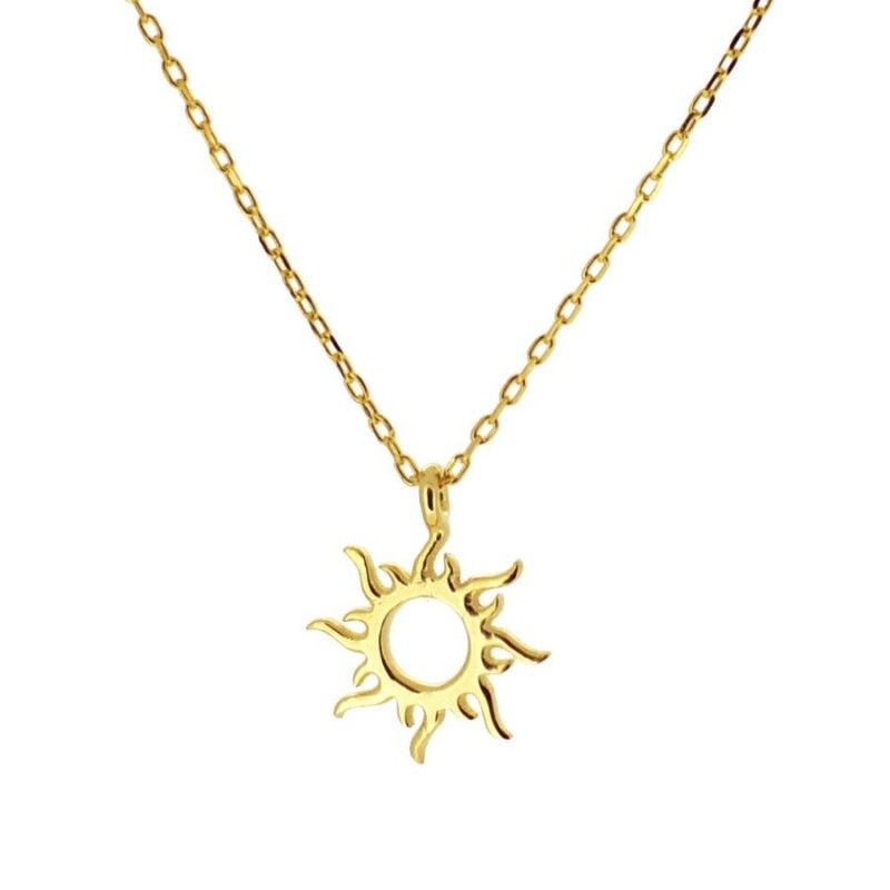Gargantilla de 38cms. graduable hasta 43cms. con cadena fina y sol de 15mm.x9mm. suspendido. Disponible en Plata de Ley 925 y en Baño de Oro 18kts.