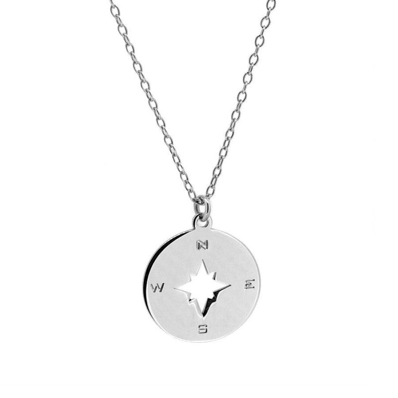 Gargantilla de 38cms. graduable hasta 43cms. Cadena con colgante Rosa de los Vientos de 16mm. Disponible en Plata de Ley 925 y en Baño de Oro 18kts.
