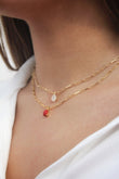 Gargantilla de 35cms. graduable hasta 42cms. Cadena eslabones de 5mm. con piedra coral suspendida de 7mm.x5mm. Disponible en Plata de Ley 925 y en Baño de Oro 18kts.