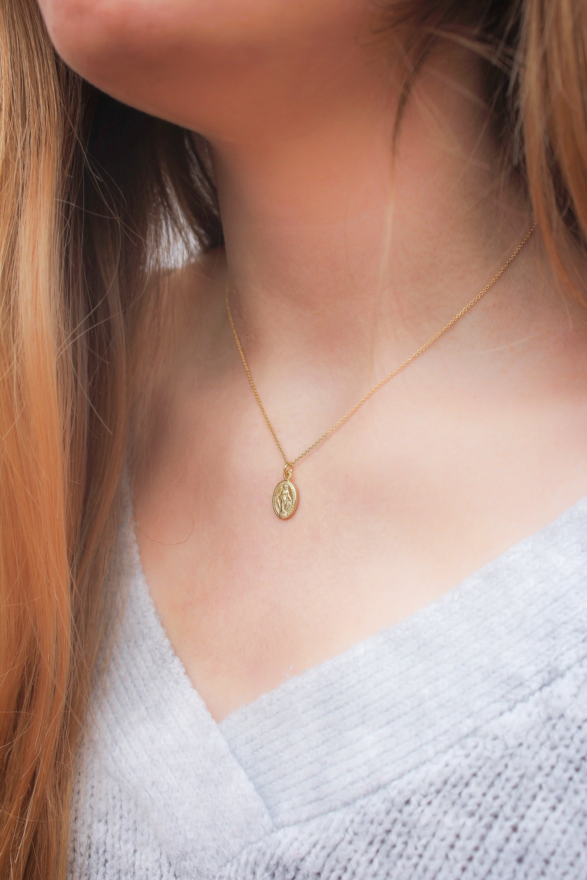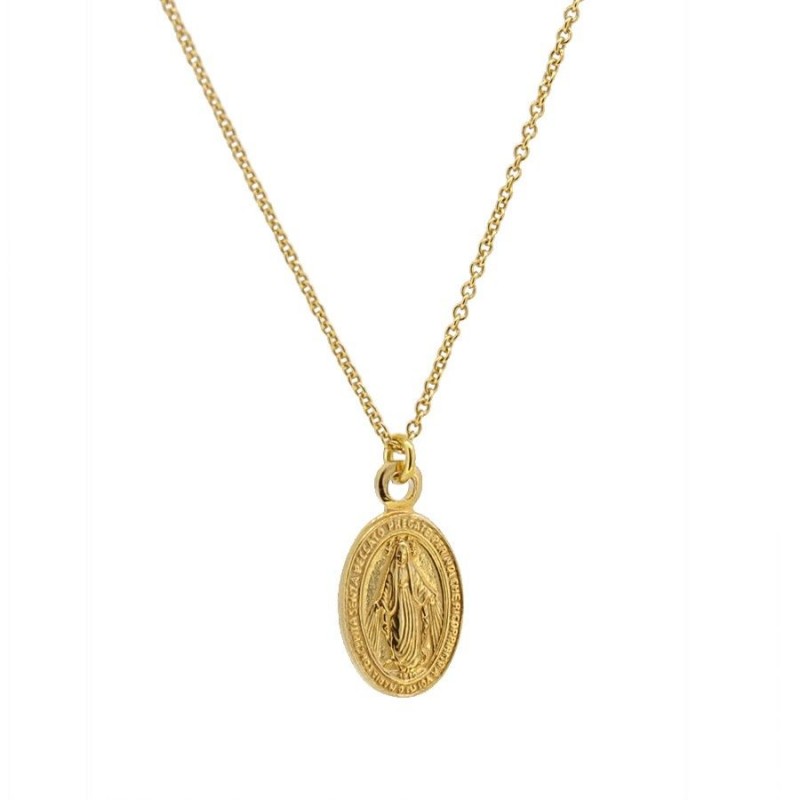 Gargantilla de 38cms. graduable hasta 43cms. Cadena con medalla de 12mm. Virgen de la Milagrosa. Disponible en Plata de Ley 925 y en Baño de Oro 18kts.