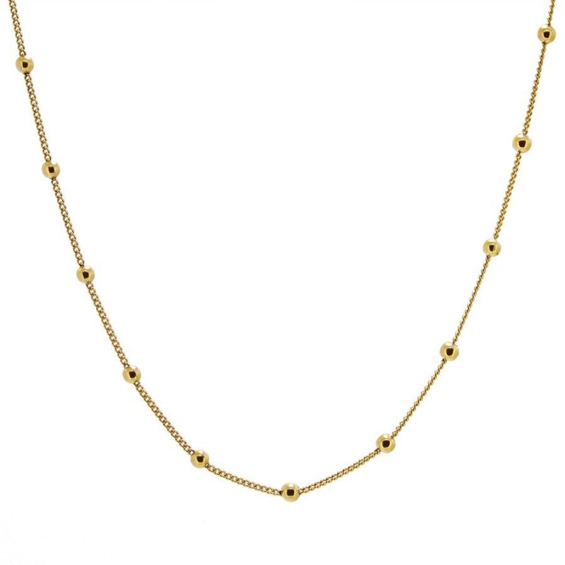 Gargantilla de 38cms. graduable hasta 43cms. Cadena con bolitas de 2mm. intercaladas cada 10mm. Disponible en Plata de Ley 925 y en Baño de Oro 18kts.