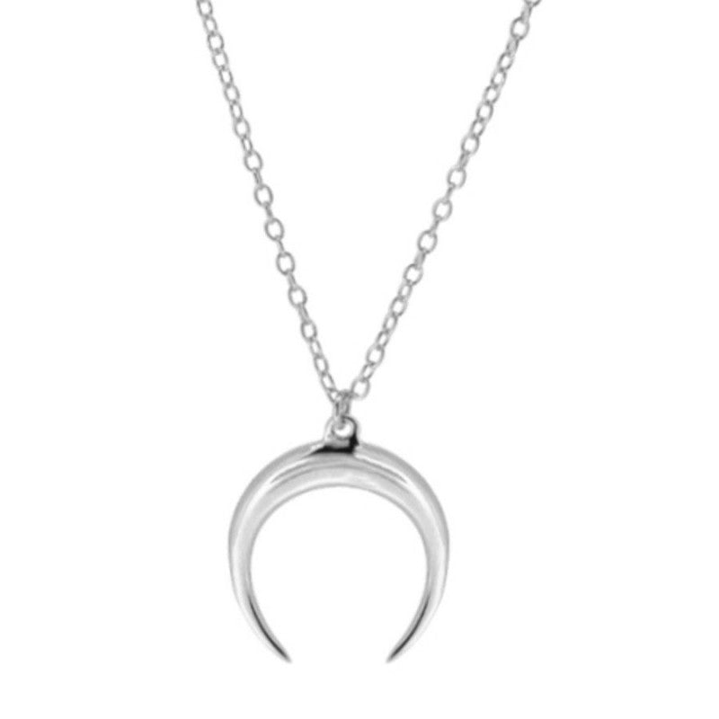 Gargantilla de 38cms. graduable a 40,5cms. y a 43cms. Cadena con luna invertida colgando.Disponible en Plata de Ley 925 y en Baño de Oro 18kts.