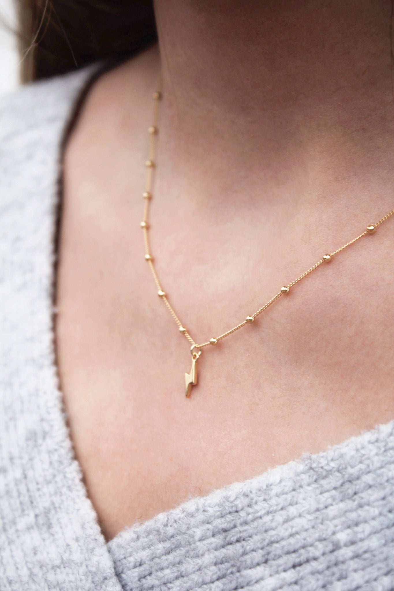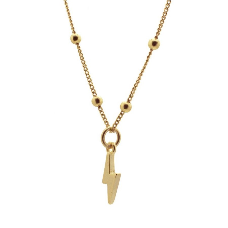 Gargantilla de 38cms. graduable hasta 43cms. Cadena con bolitas intercaladas cada 10mm. y rayo de 10mm. colgando. Disponible en Plata de Ley 925 y en Baño de Oro 18kts.