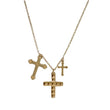 Collar acero dorado de 40cm. graduables a 45cm. con tres cruces colgando de diferentes tamaños y motivos.