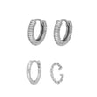 Blues es un pack armónico formado por un par de pendientes Kooke, más una unidad de nuestro Alondra y el earcuff Selena. Disponible en baño de oro y plata.