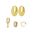 Metal es un pack intenso formado por un par de pendientes Duka, más una unidad de nuestro Brahms y de Myles. Cierra el pack el earcuff Rahpsody. Disponbile en baño de oro y plata.