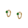Pendiente aro bolitas de 11mm. externo, con diámetro de 7,5mm. en interior y con circonita verde de 3mm. Pendiente para uso combinable a primer agujero o piercing. Se puede adquirir por unidad o par. Disponible en Plata de Ley 925 y en Baño de Oro 18kts.