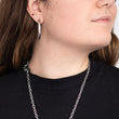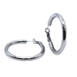 Pendientes de aro en acero plateado con cierre de ballestilla. Un diseño pulido de 3cm. de diámetro interior y 0,5cm. de grosor que equilibra solidez y sencillez. Un esencial atemporal.