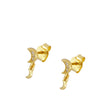 Pendiente de luna de 5mm. con circonitas más una luna lisa suspendida de 3mm. Se puede adquirir por unidad o par. Disponible en Plata de Ley 925 y en Baño de Oro 18kts.