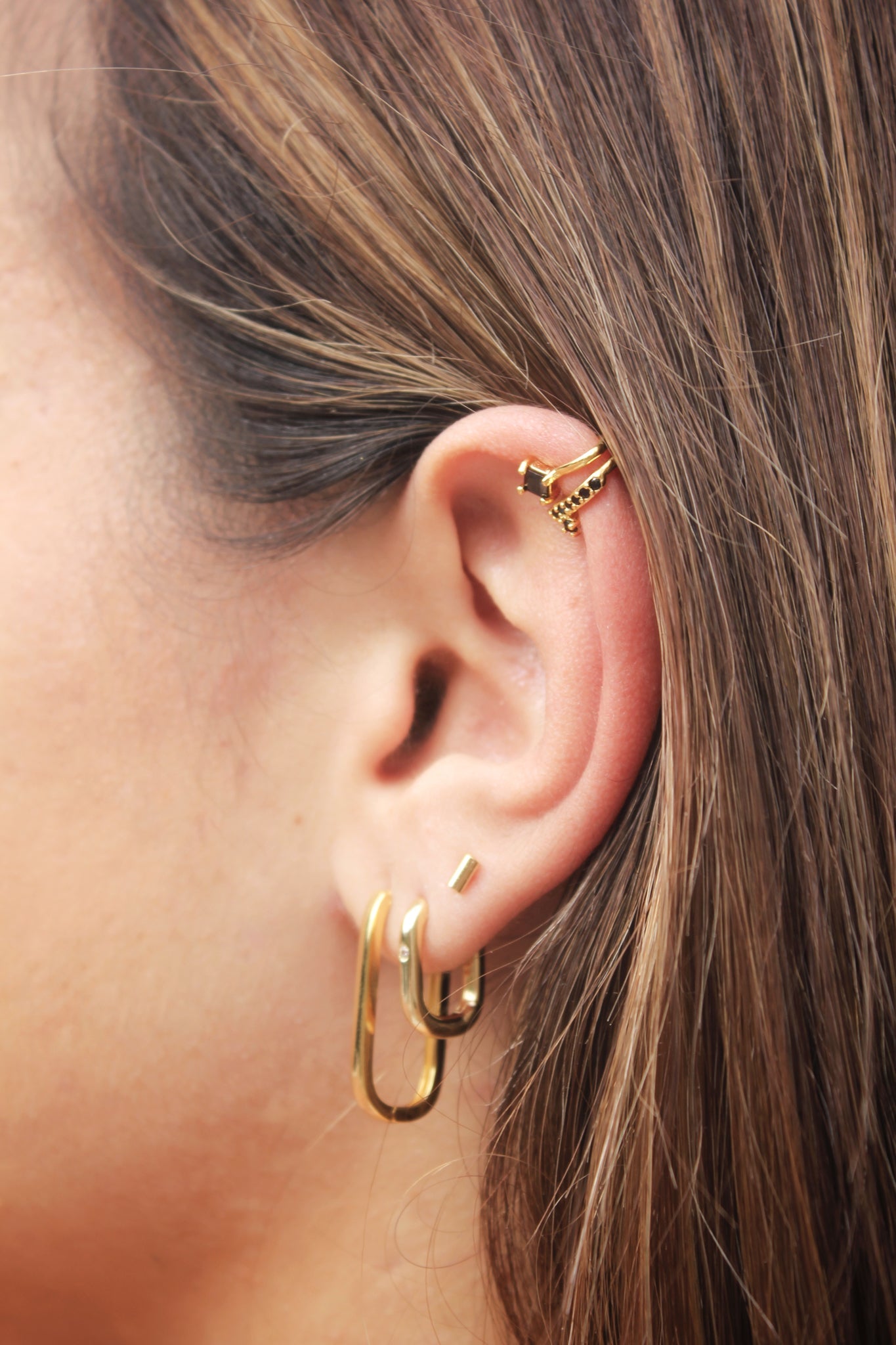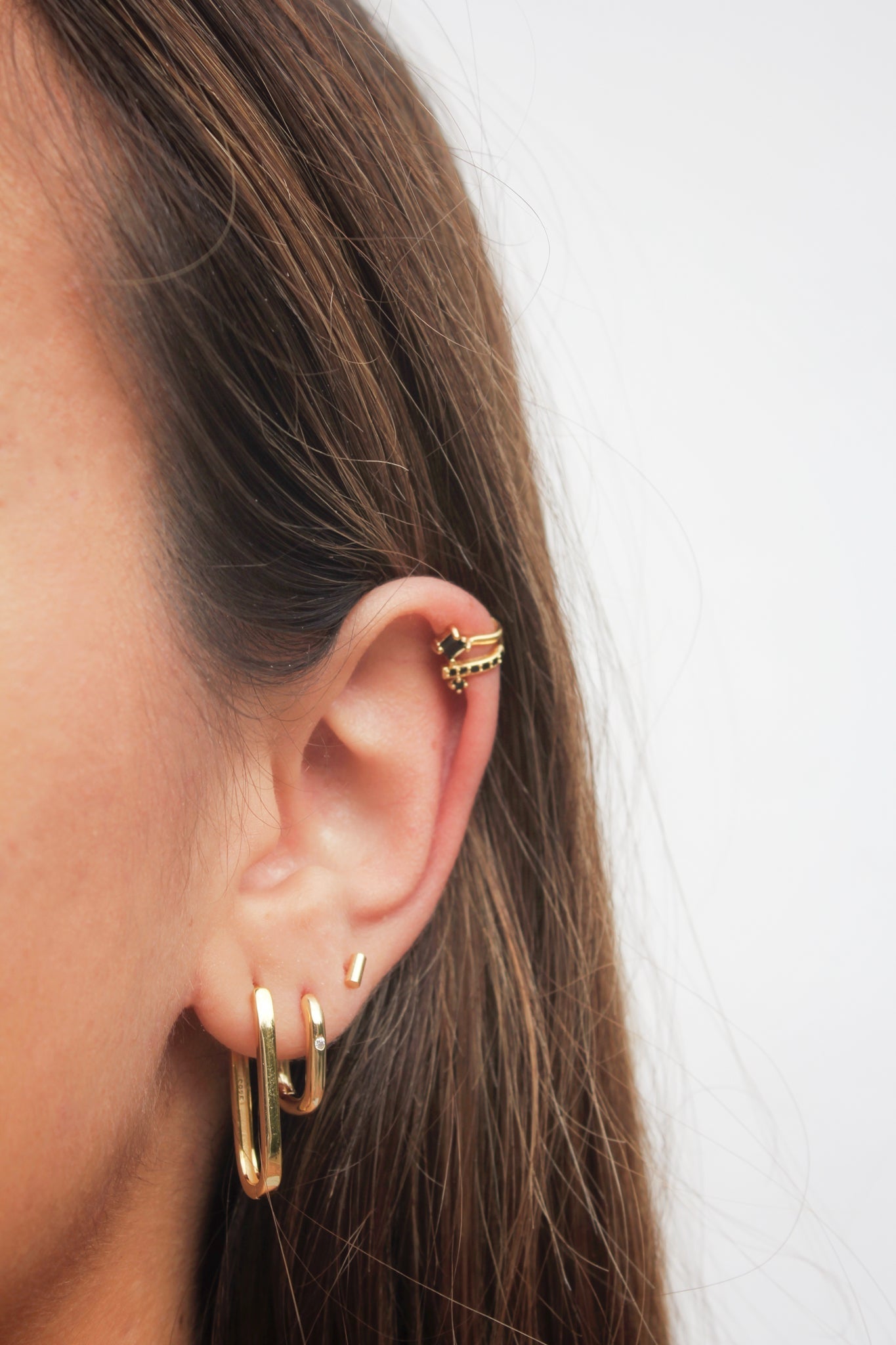 Pendiente mini con un diseño en forma de tubito de 4mm. de largo y 2mm. de ancho. Ideal para usar en cualquier agujero del lóbulo. Se puede adquirir por unidad o par. Disponible en Plata de Ley 925 y en Baño de Oro 18kts.