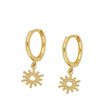 Pendiente aro de 11mm. con un sol de bolitas suspendido. Se pueden adquirir por unidad o par. Disponible en Plata de Ley 925 y en Baño de Oro 18kts.