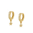 Pendiente aro click de 10mm. envuelto en seis circonitas blancas y con una estrella de 3,5mm. colgando. Pendiente para uso combinable a primer agujero o piercing. Se puede adquirir por unidad o par. Disponible en Plata de Ley 925 y en Baño de Oro 18kts.