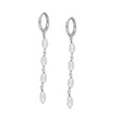 Pendiente aro con cadena de 42mm. entrelazando con elegancia cuatro perlas naturales. Disponible en Plata de Ley 925 y en Baño de Oro 18kts.