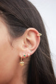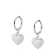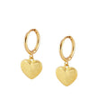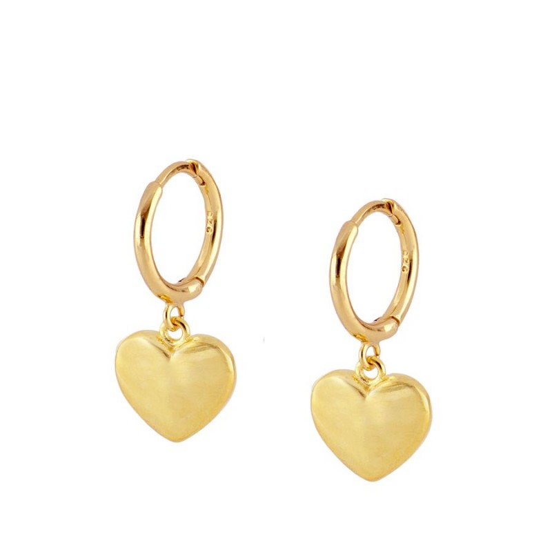 Pendiente aro de de 11mm. con corazón suspendido de 10mm. Se puede adquirir por unidad o par. Disponible en Plata de Ley 925 y en Baño de Oro 18kts.