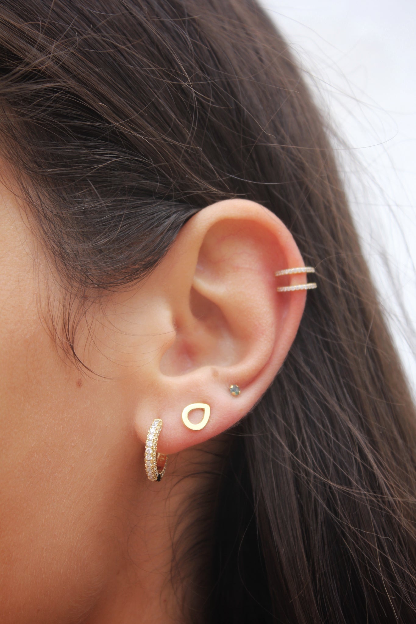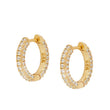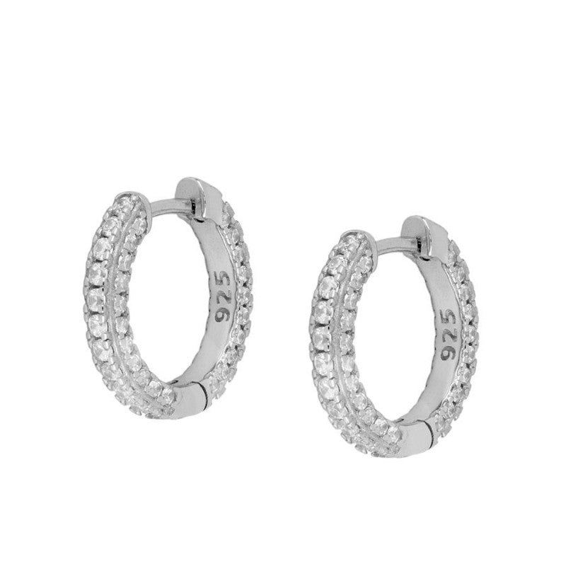 Pendiente aro de 15mm. y con un grosor de 3mm. envuelto frontal y lateralmente por circonitas blancas. Disponible en Plata de Ley 925 y en Baño de Oro 18kts.