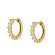 Pendiente aro click de 15mm. con seis circonitas blancas rectangulares. Disponible en Plata de Ley 925 y en Baño de Oro 18kts.