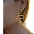 Pendiente acero dorado de 7,2cm. x 3,2cm. con cierre de presión y forma de serpiente.