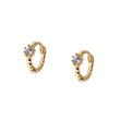 Pendiente aro bolitas de 11mm. externo, con diámetro de 7,5mm. en interior y con circonita blanca de 3mm. Para uso combinable a primer agujero o piercing. Se puede adquirir por unidad o par. Disponible en Plata de Ley 925 y en Baño de Oro 18kts.