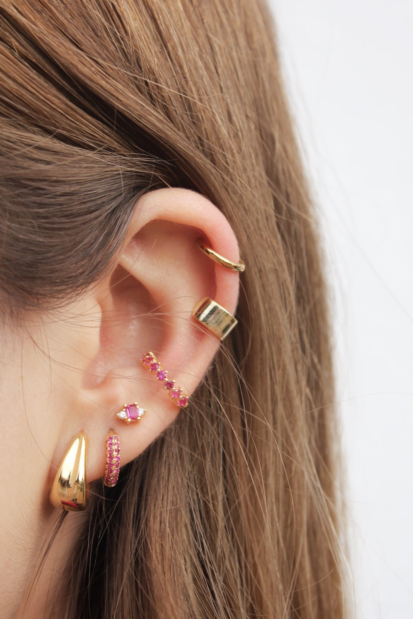 Pendiente con diseño ovalado que se adapta al lóbulo. Disponible en Plata 925 y Baño de Oro 18kts.