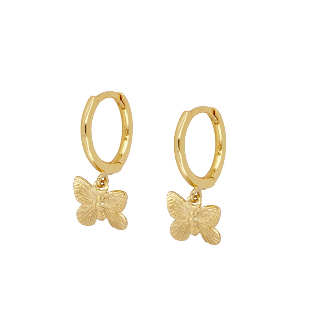 Pendiente aro de 11mm. sostendiendo mariposa de 10mm. Se pueden adquirir por unidad o par. Disponible en Plata de Ley 925 y en Baño de Oro 18kts.