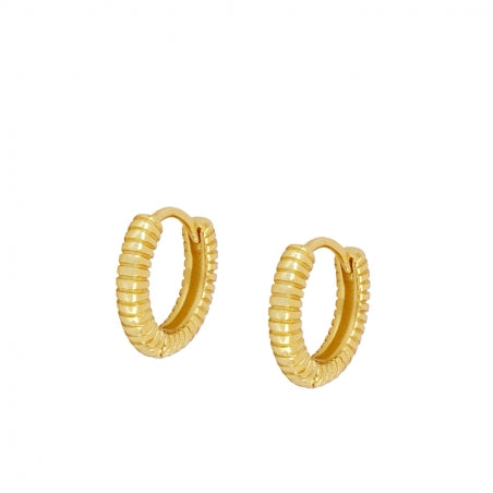 Pendiente aro en surcos de 14mm. externo y un grosor de 3mm. El tamaño interior es de 10mm. Para uso combinable a primer agujero o piercing. Se puede adquirir por unidad o par. Disponible en Plata de Ley 925 y en Baño de Oro 18kts.