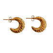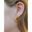Pendiente acero dorado con cierre presión, aro con relieve de 2,1cm. Este aro destaca por su grabado que aporta originalidad y distinción.