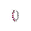 Pendiente Ear Cuff con ocho circonitas de 2mm. color fucsia. Se ajusta perfectamente al cartílago de la oreja sin necesidad de agujero. Se adquiere por unidad. Disponible en Plata de Ley 925 y en Baño de Oro 18kts.