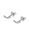Pendiente mini de 8mm. con pequeña barra torcida de seis circonitas blancas incrustadas. Ideal para usar en cualquier agujero del lóbulo. Se puede adquirir por unidad o par. Disponible en Plata de Ley 925 y en Baño de Oro 18kts.