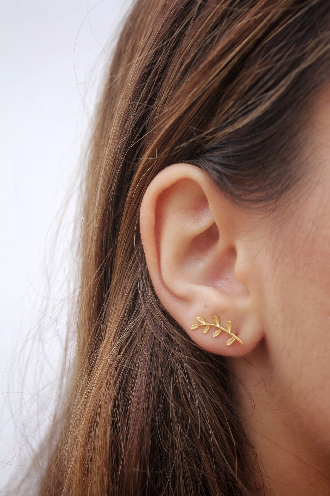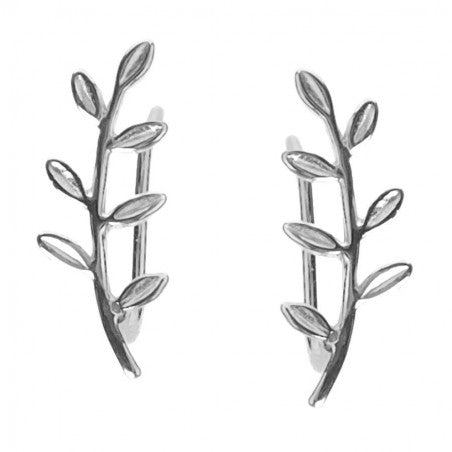 Pendiente trepador con diseño de hoja de 15mm. Únicamente presionando la parte posterior del pendiente, se adaptará a tu lóbulo. Ideal para vestir el lateral de tu oreja. Disponible en Plata 925 y Baño de Oro 18kts.