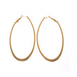 Pendiente acero dorado de cierre ballestina. Aro de forma elíptica. Su parte inferior es plana y su forma ovalada estiliza el rostro.