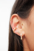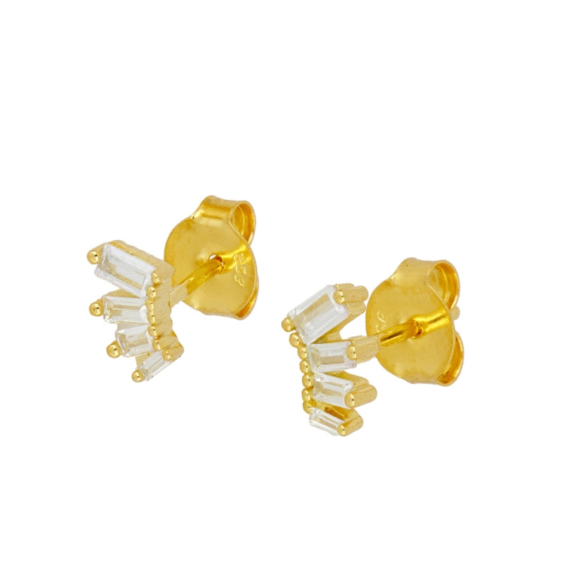 Pendiente de 8mm. con cuatro circonitas blancas de distintos tamaños que le dan una forma oval. Se puede adquirir por unidad o par. Disponible en Plata de Ley 925 y en Baño de Oro 18kts.