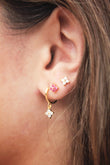 Pendiente piercing con bola de 3mm. y barra de 6mm. de largo por 0,9mm. de ancho. Piercing en forma de flor de 5mm. con cuatro circonitas incrustadas en sus pétalos. Se puede adquirir por unidad o par. Disponible en Plata de Ley 925 y en Baño de Oro 18kts.